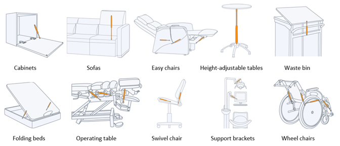 But with these same gas springs, manufactured with the same equipment, Stabilus found that they can also be equally useful in a number of industrial applications from office swivel chairs to hospital beds to reducing the vibrations on solar panels.
