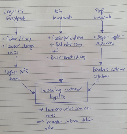 A key variable in determining how price inelastic a customer will be is their loyalty to the Wayfair brand. Wayfair have found through the continuous price-tests they perform that customers tend to be willing to pay more for faster delivery, prettier and more accurate product images and better customer service. It is for this reason that Wayfair is investing heavily into its proprietary logistics network, its technology and the supplier and customer experience. (Exhibit 1)