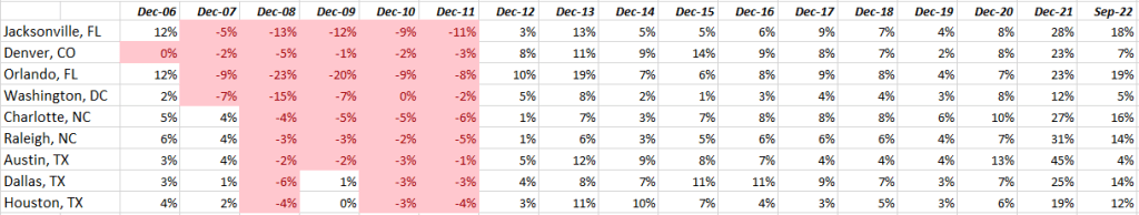 For the 9 markets DFH operates in, prices are strongly up so far this year. (Exhibit 2)