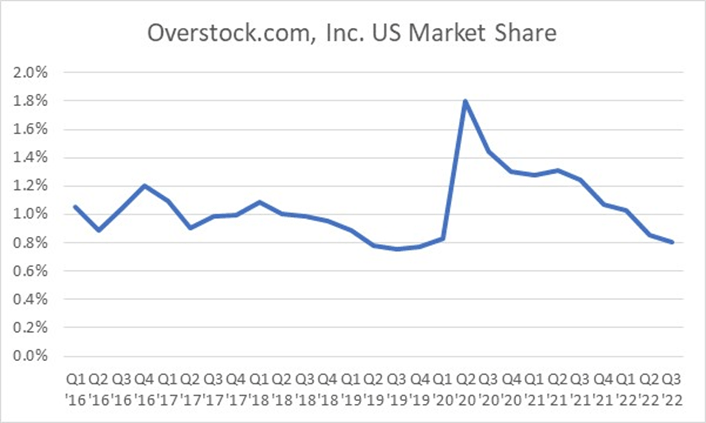 Exhibit 2: OverStock.com, an online-only home goods retailer, has also lost market share post COVID