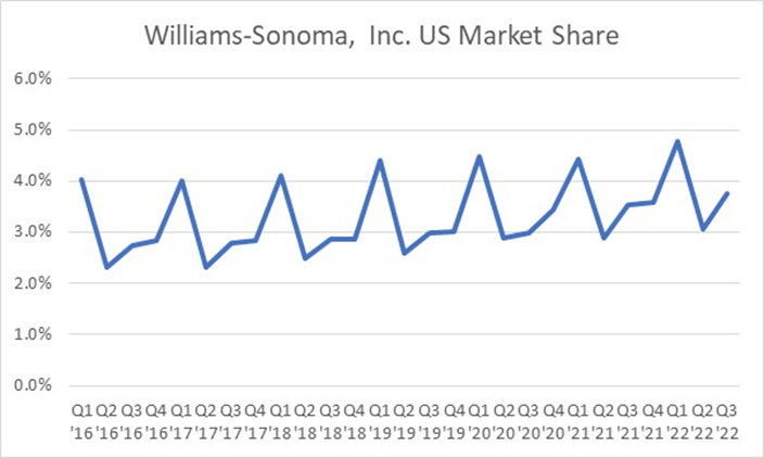 Exhibit 4: Williams Sonoma has managed to maintain market share over time likely as a result of having an online presence in addition to high-street shops