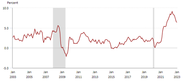 Exhibit 1: Investor optimism stems from US CPI fall from 9.1% in Jun-22 to 6.4% in Jan-23